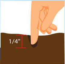 Then make a hole 1/4" deep in the soil and place two seeds in each hole.