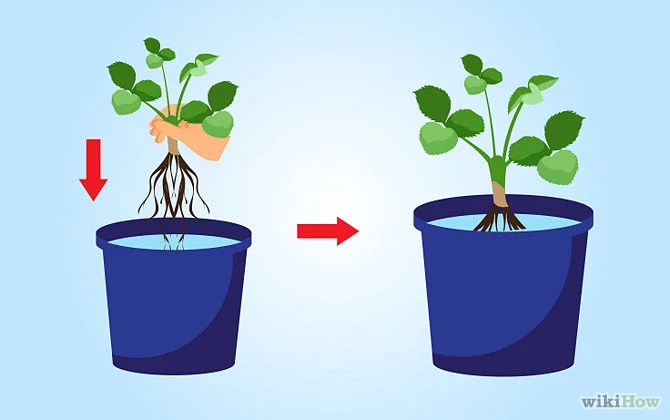 Strawberries do not like for their roots to be disturbed, so take care during this process. You can soak the roots for up to an hour to be sure they have absorbed enough moisture to keep them hydrated during the initial transplanting stages.