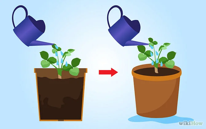 Use a watering can with a sprinkler attachment to avoid disturbing or pushing the soil out of the pot.