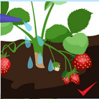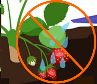 Newly planted Strawberries must be watered regularly. All Strawberry plants will need regular watering during dry weather. It is important to keep water off the fruit because this will cause the fruit to rot. When watering, aim for the crown of the plant and use a very low pressure or slow stream of water.